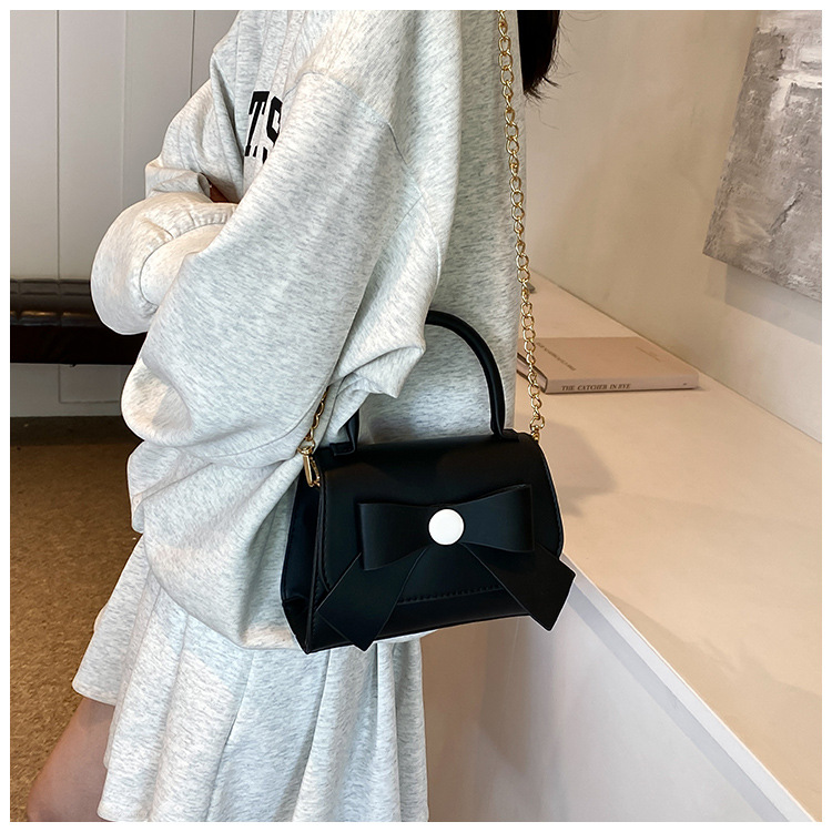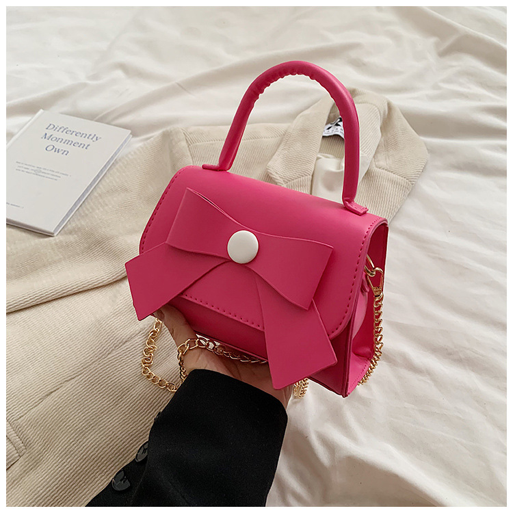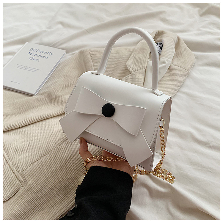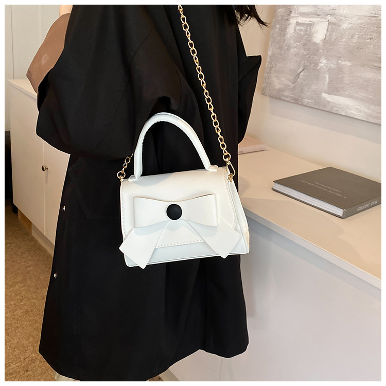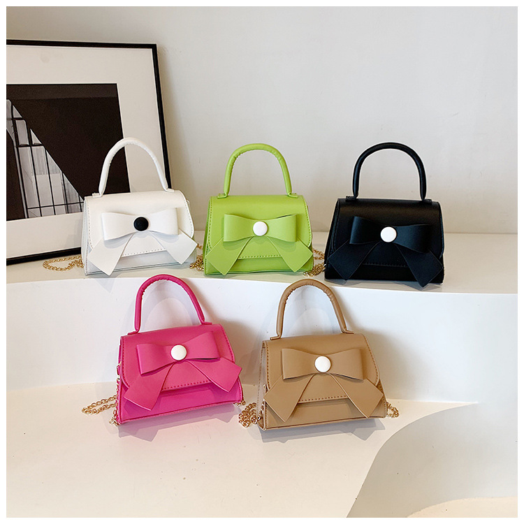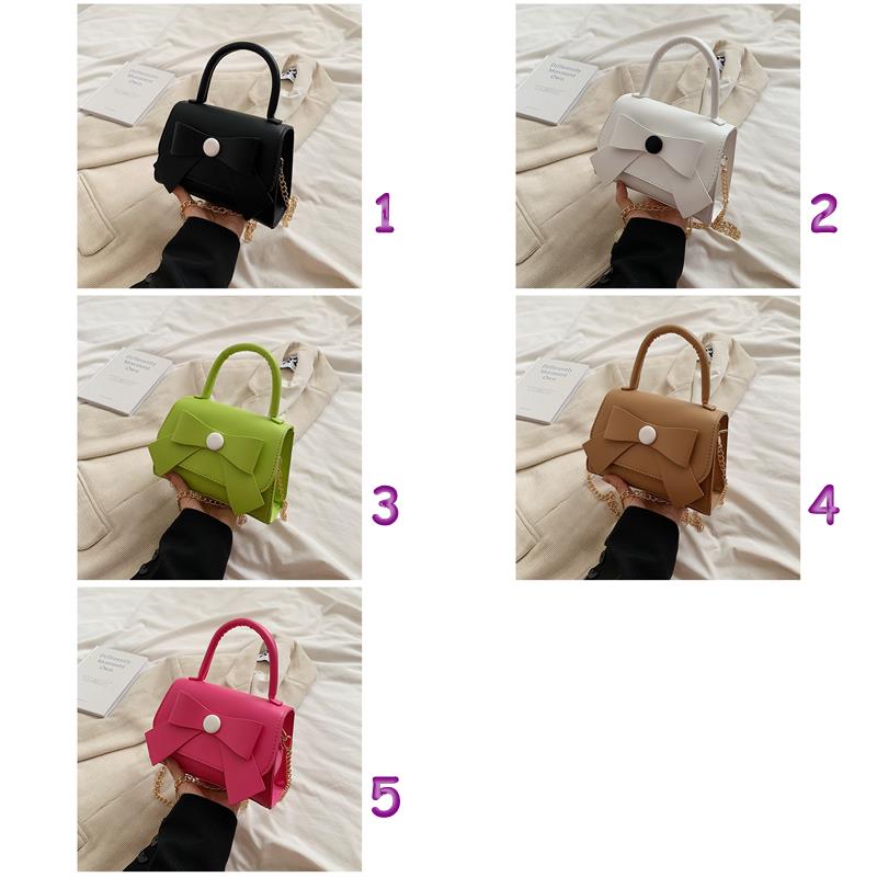 上品な蝶結びデザインが魅力的な革バッグレディース向けハンドバッグです。 手持ちはもちろん、チェーンストラップで肩掛けとしても使える2Way仕様。 白・緑・黒・茶・桃の5色から選べるコンパクトサイズで、デイリーユースに最適です。